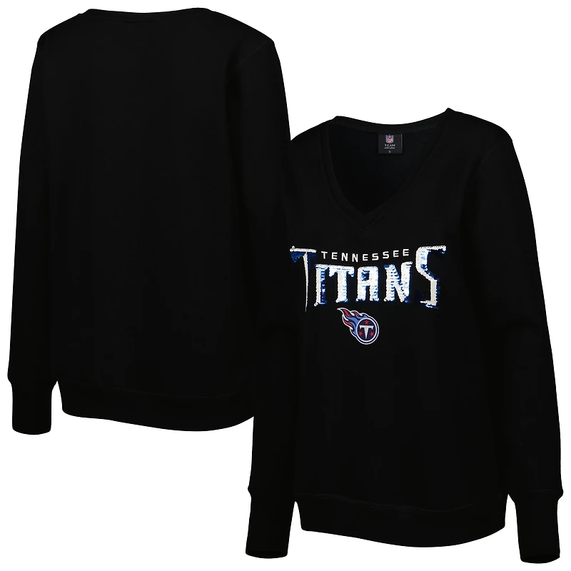 Sweat-shirt noir à encolure en V avec logo sequins Tennessee Titans Cuce pour femme