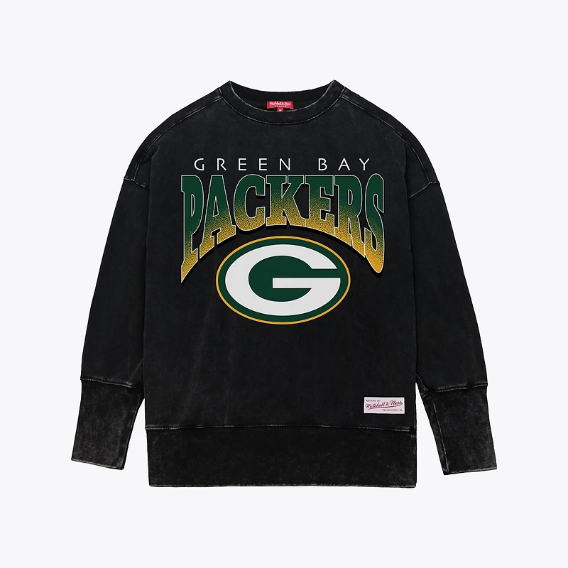 Sweat-shirt ras du cou noir délavé minéral pour femme Mitchell & Ness des Packers de Green Bay