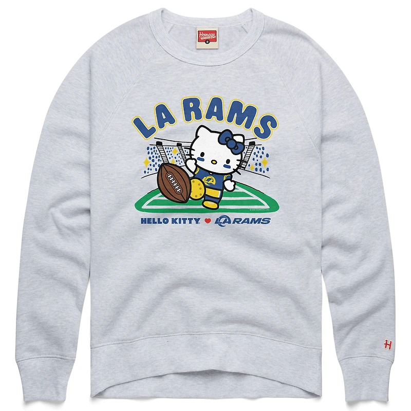 Sweat-shirt unisexe Homage Ash Hello Kitty x Los Angeles Rams en mélange de trois matières pour le coup d'envoi