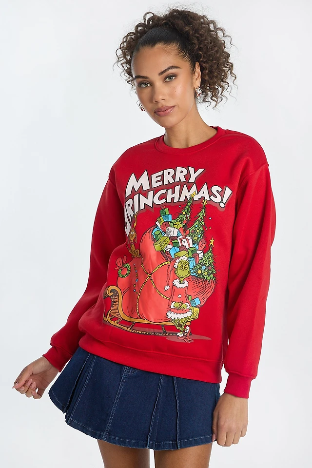 Sweatshirt à col ras du cou imprimé Merry Grinchmas