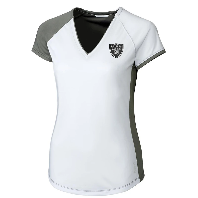 T-shirt à col en V blanc/gris pour femme Cutter & Buck des Las Vegas Raiders Presley