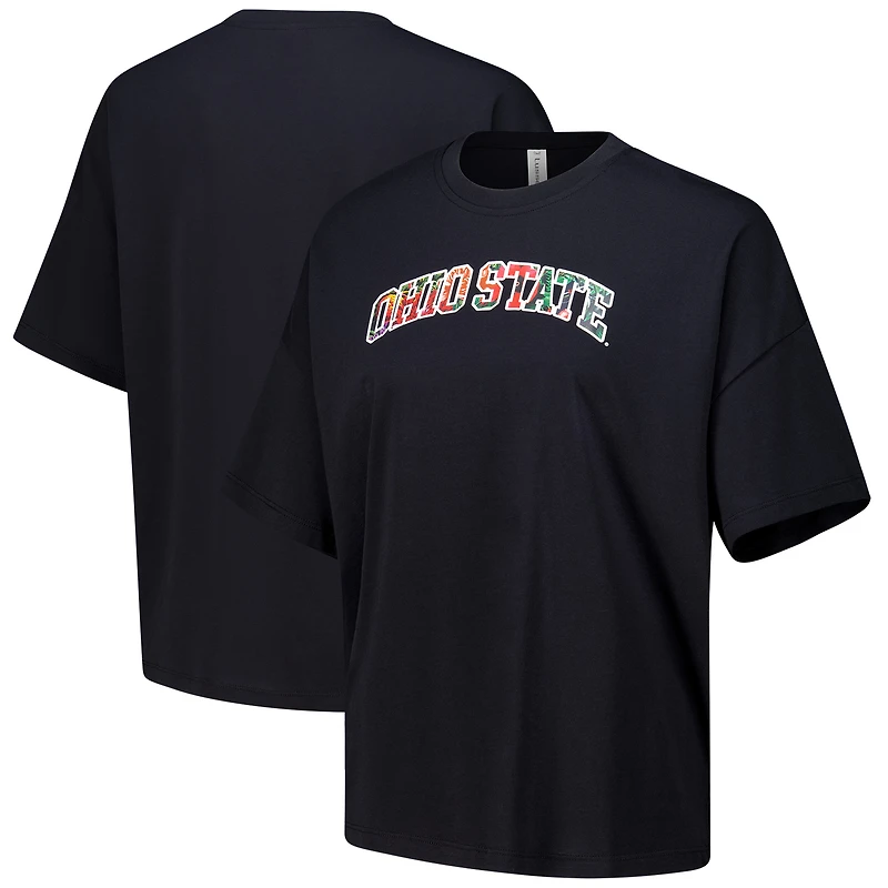 T-shirt à imprimé floral noir pour femme Lusso Ohio State Buckeyes