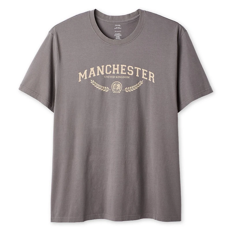 Le t-shirt à imprimé graphique George Plus pour hommes ajoute une option confortable et simple à votre garde-robe décontractée au quotidien. Il est confectionné dans un tricot jersey traité par lavage doux afin de vous offrir une sensation agréable de déjà porté. Conçu avec une encolure ras du cou classique, des manches courtes pour une sensation aérée, un imprimé graphique cool à l’avant et un ourlet droit, ce t-shirt vous procure un look simple et polyvalent. Agencez-le à un jean, un short ou un pantalon de jogging pour une tenue complète.