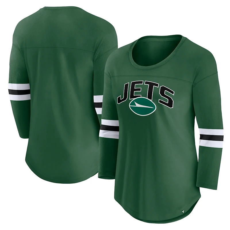 T-shirt à manches 3/4 avec logo de la première équipe des New York Jets Fanatics Green pour femmes