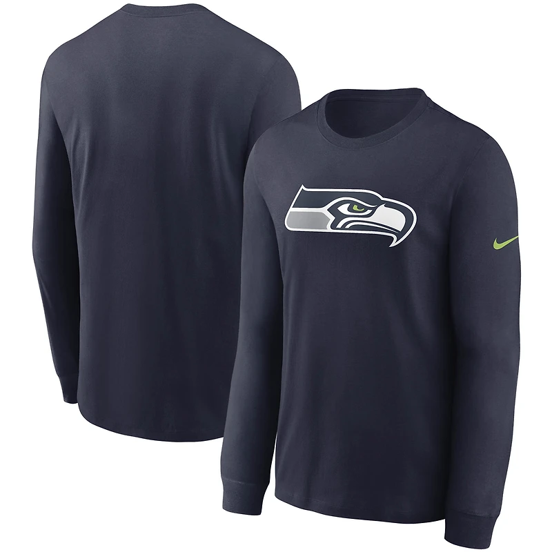 T-shirt à manches longues Nike College Navy Seattle Seahawks pour homme avec logo principal