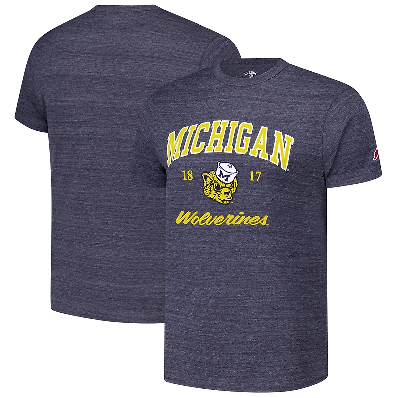 T-shirt à trois mélanges Victory Falls Arch Script Michigan Wolverines Heather Navy pour hommes