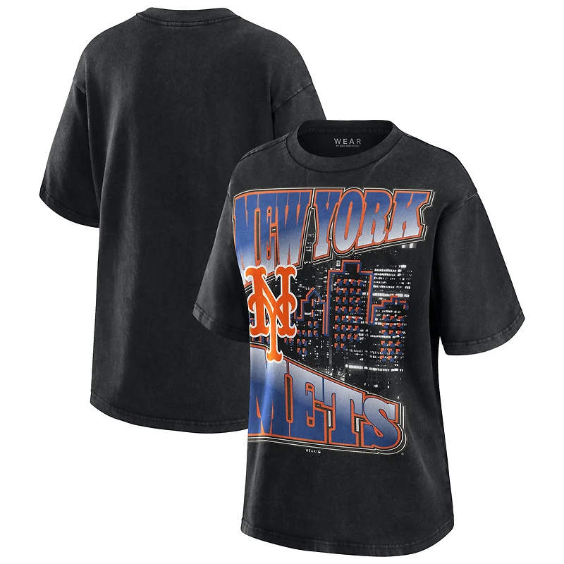 T-shirt boyfriend oversize noir à imprimé Skyline des Mets de New York pour femme par Erin Andrews