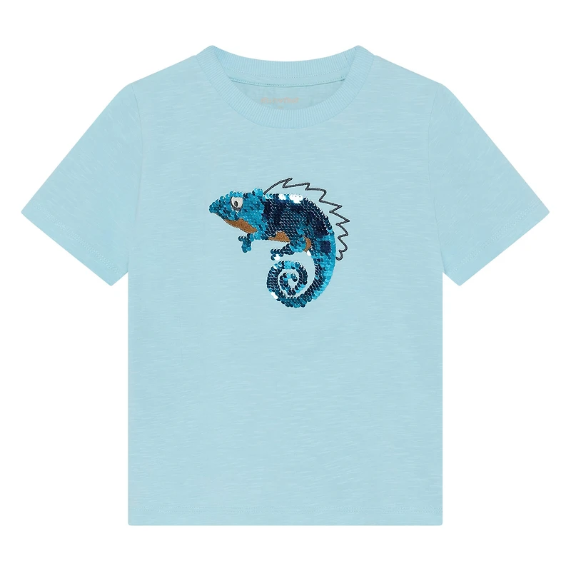 T-shirt à manches courtes imprimé de Minymo. Ce t-shirt présente un imprimé sur la poitrine et un col rond. Certifié OEKO-TEX® STANDARD 100, n° de certificat 2276-364 DTI. Composition : 95 % coton / 5 % élasthanne.