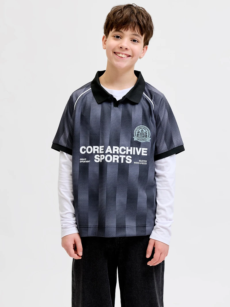 Nos vêtements de sport sont confortables et vous offrent une grande liberté de mouvement. Le jersey est un tissu léger et stretch qui assure le confort. Découvrez l’univers cool de Jack and Jones Junior, où la mode s’anime avec une énergie juvénile et un charme vibrant. Nos collections sont un mélange de designs frais, tendance et cool, adaptés aux garçons en forme âgés de 8 à 16 ans. Plongez dans des styles de haute qualité et confortables qui mettent en valeur la mode masculine. Des coupes cool à la touche contemporaine, Jack and Jones Junior redéfinit la mode pour les 8 à 16 ans et intègre l’esprit de l’âge adulte dans chaque tenue. - Type d'article : T-shirt - Col : Polo - Manche : Manches courtes - Coupe : Coupe ample - Mode de vie : Loisirs