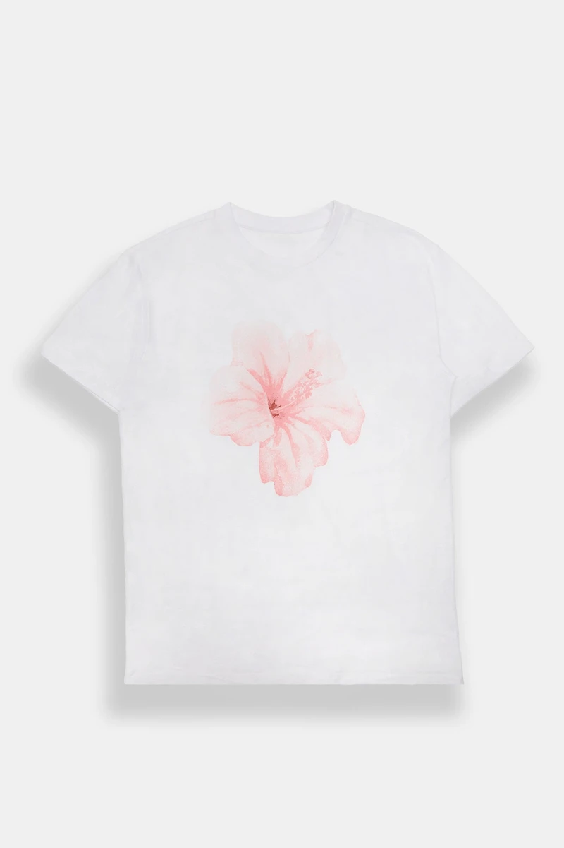 T-shirt pour femmesImprimé hibiscus sur la poitrineCol ras du couCoupe boyfriend100% CotonLaver à l'envers - Machine à l'eau froide - Cycle délicat avec couleurs similaires - Sans eau de javel - Séchage en machine à basse température - Repassage à basse température sur l'enversImportéArticle #0550-31392656
