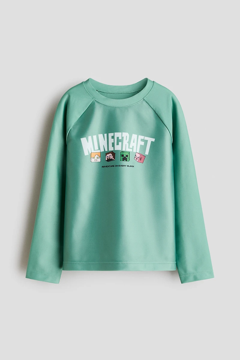 T-shirt de bain imprimé en textile FPS 50 protégeant des UV. Modèle à encolure ronde avec longues manches raglan.
