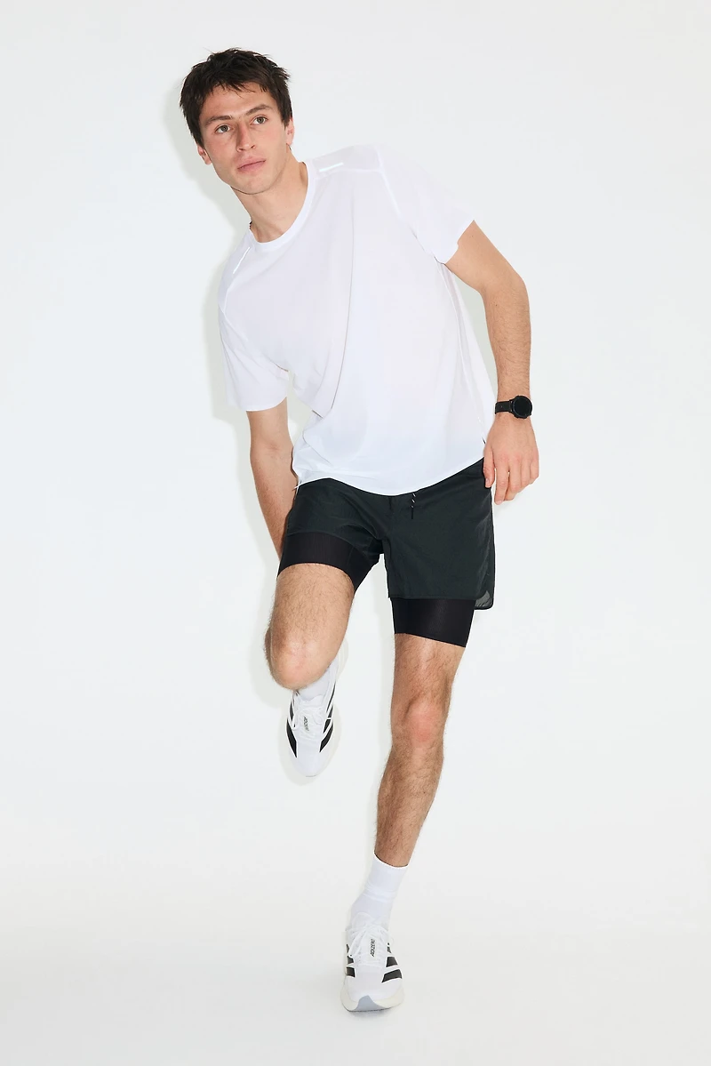 T-shirt de course en textile technique bénéficiant de la technologie DryMove🅪 qui contribue à éloigner l'humidité de la peau et vous permet de rester confortablement au sec lorsque vous bougez. Coupe classique à encolure ronde et coutures latérales décalées vers l'avant. Bride de suspension sur la nuque et aérations au dos. Bas droit avec fentes latérales. Détails réfléchissants.