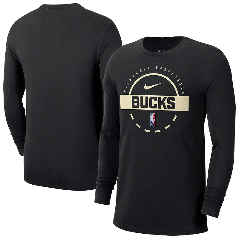 T-shirt d'entraînement Nike noir authentique à manches longues pour homme des Milwaukee Bucks
