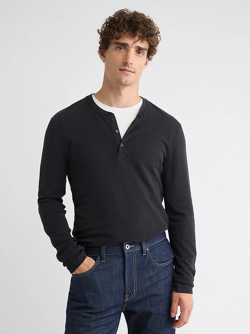 Ce classique t-shirt à col henley conçu dans un douillet tricot de coton gaufré est définitivement un essentiel pour la saison froide. - Tricot de coton gaufré - Coupe classique - Manches longues - Col henley - Longueur des manches à partir du milieu du dos de 35,25" (taille M) - Longueur du corps à l'avant de 28" (taille M)