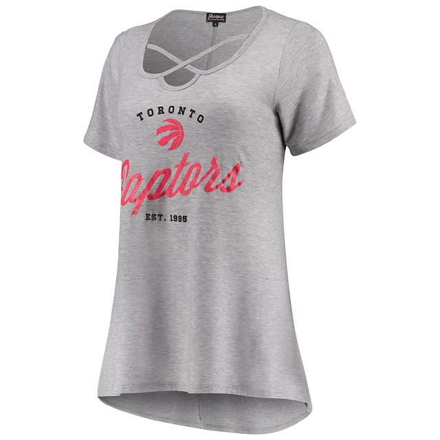 T-shirt gris chiné Toronto Raptors Criss Cross Front Tri-Blend pour femme