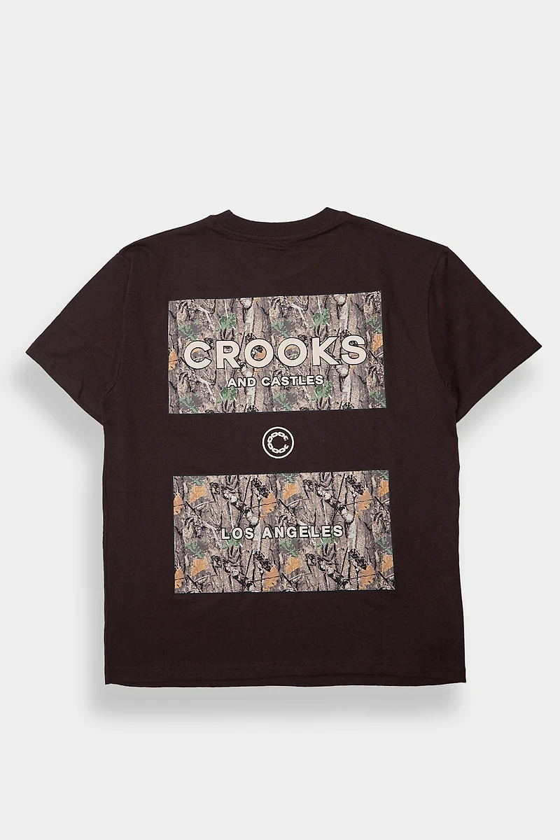T-shirt avec logo Crooks & Castles brodé sur la poitrineImprimé camo avec texte Crooks & Castles Los Angeles en puff-ink sur le dosCol ras du couCoupe régulière60% Coton, 40% PolyesterLaver à l'envers - Machine à l'eau froide - Cycle délicat avec couleurs similaires - Sans eau de javel - Séchage en machine à basse température - Repassage à basse température sur l'enversImportéArticle #1610-67242612