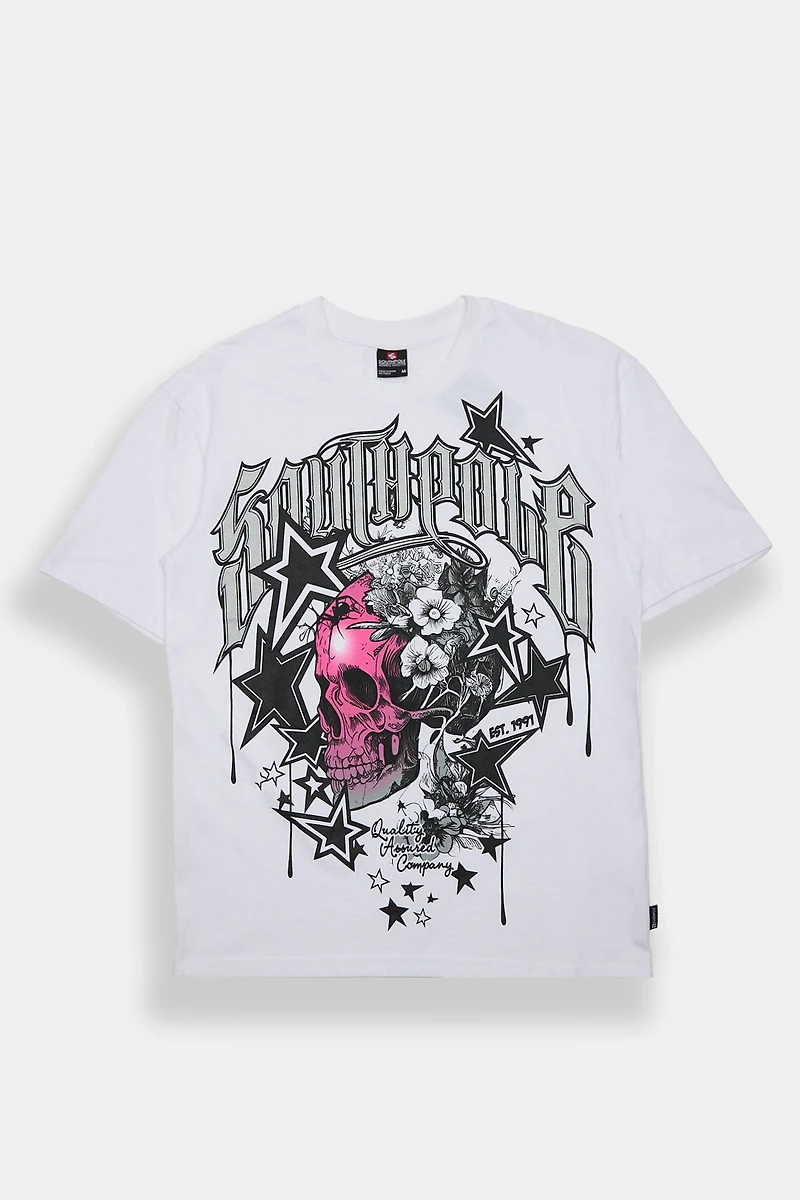 T-shirt pour hommesImprimé crâne floral et étoiles à l'avantCol ras du couCoupe régulièreÉtiquette de marque tissée sur la couture inférieure gauche60 % coton, 40 % polyesterLaver à l'envers - Machine à l'eau froide - Cycle délicat avec couleurs similaires - Sans eau de javel - Séchage en machine à basse température - Repassage à basse température sur l'enversImporté par SouthpoleArticle #1610-30722654
