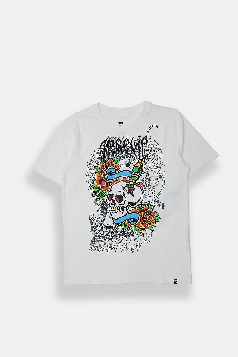 T-shirt avec imprimé crâne tatouage Arsenic sur la poitrineÉtiquette de marque tissée sur l'ourlet inférieurCol ras du couCoupe régulière60% Coton, 40% PolyesterLaver à l'envers - Machine à l'eau froide - Cycle délicat avec couleurs similaires - Sans eau de javel - Séchage en machine à basse température - Repassage à basse température sur l'enversImporté par ArsenicArticle #2750-40912611