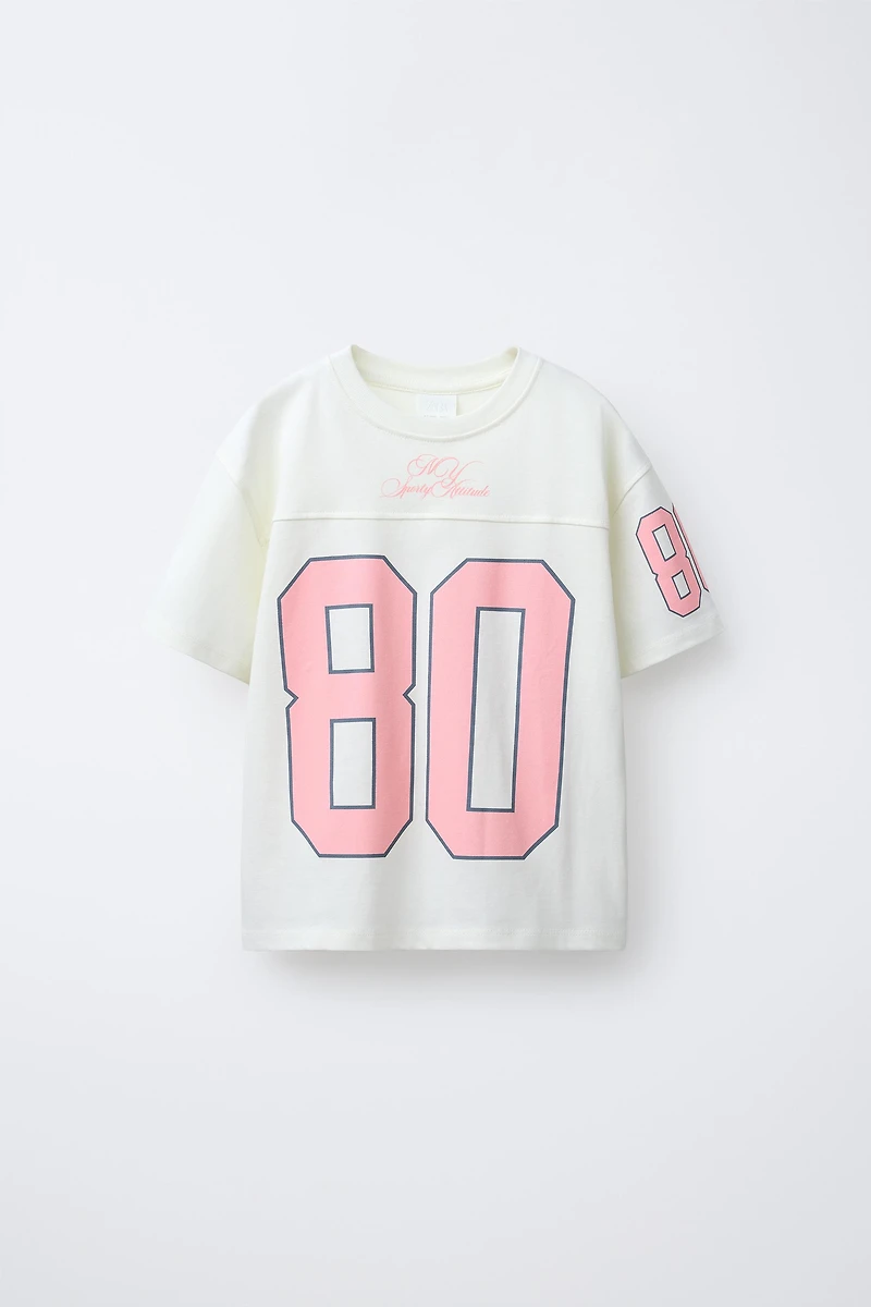 T-shirt avec col rond et manches courtes. Imprimé sur le devant et au dos. Tissu 100 % coton.