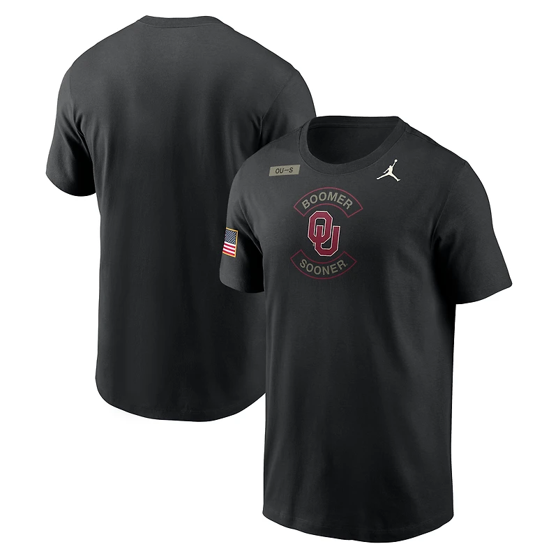 T-shirt Jordan Brand Dri-FIT noir pour homme, Oklahoma Sooners 2025, appréciation militaire