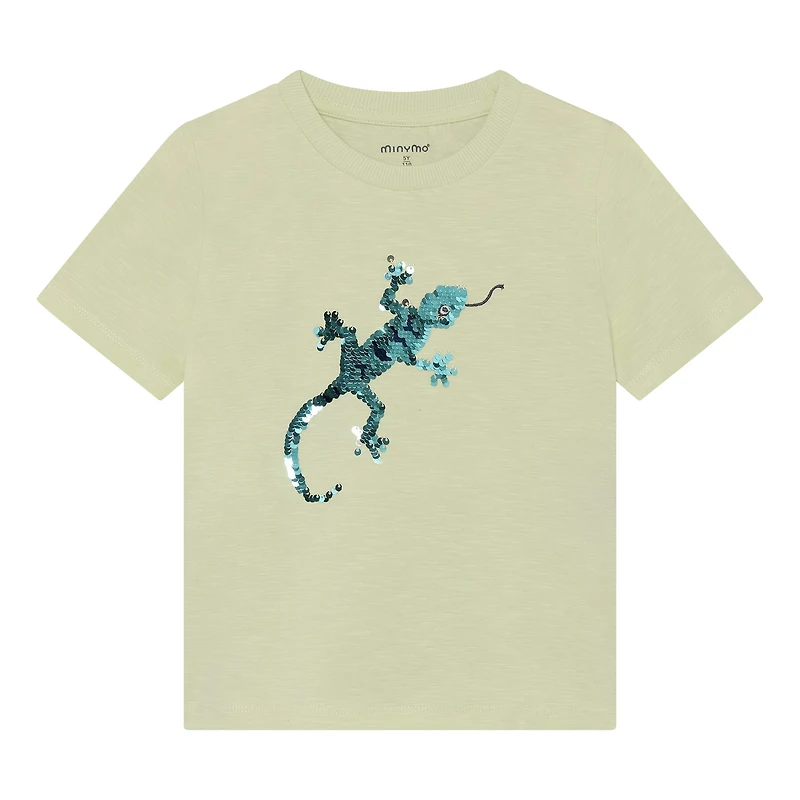 T-shirt à manches courtes imprimé de Minymo. Ce t-shirt présente un imprimé sur la poitrine et un col rond. Certifié OEKO-TEX® STANDARD 100, n° de certificat 2276-364 DTI. Composition : 95 % coton / 5 % élasthanne.