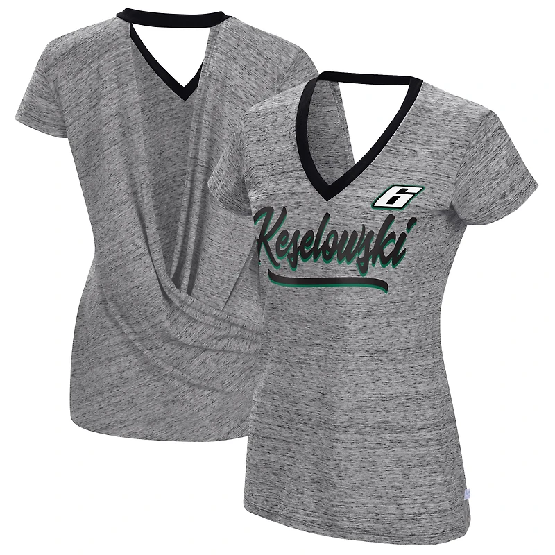T-shirt mi-temps cache-cœur Brad Keselowski Touch noir chiné pour femme