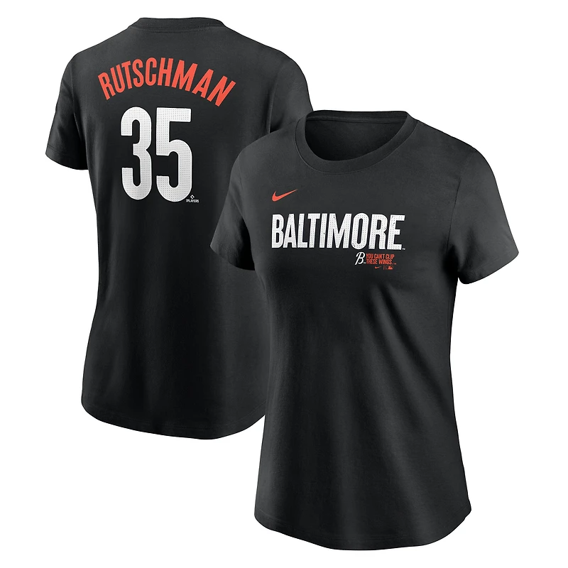 T-shirt Nike Adley Rutschman pour femme avec nom et numéro City Connect Fuse des Orioles de Baltimore noir