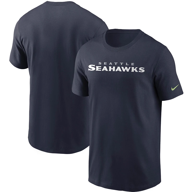 T-shirt Nike College Navy Seattle Seahawks Team Wordmark pour homme