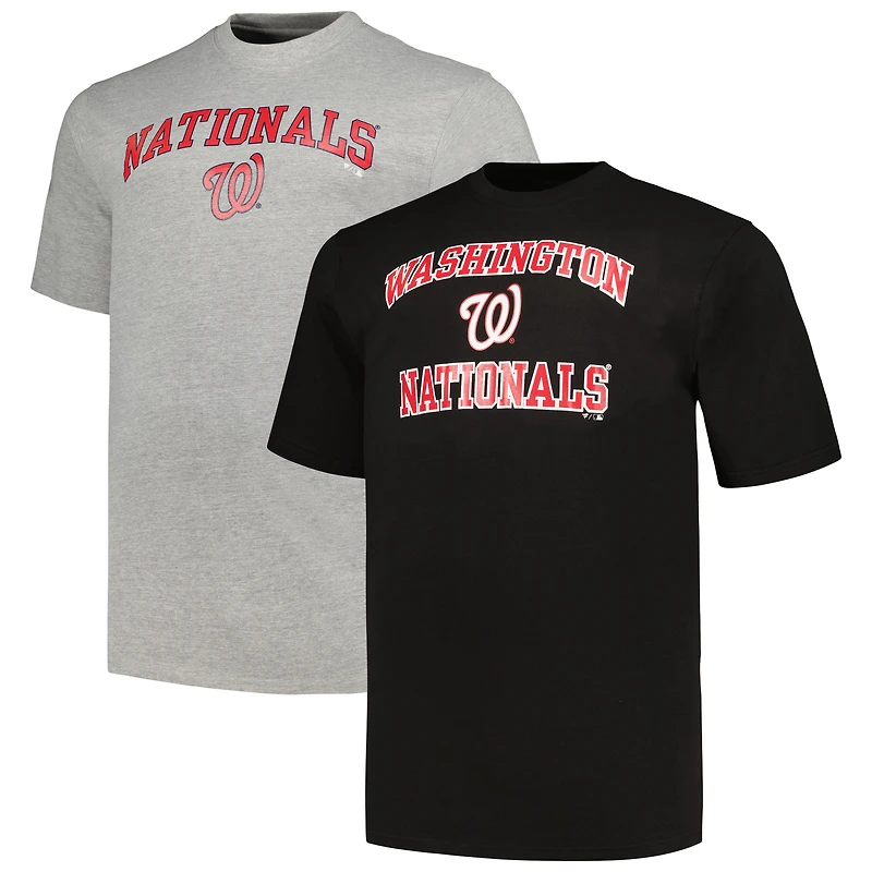 T-shirt pour homme Profile noir/gris chiné Nationals de Washington Big & Tall Combo Pack
