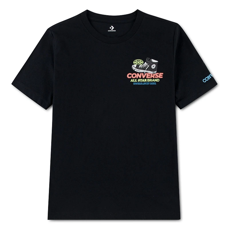 Avec ses audacieux motifs de baskets des deux côtés, ce t-shirt coupe standard signé Converse est un indispensable de la garde-robe, confortable pour le quotidien. Confectionné en jersey doux, il arbore une silhouette classique à manches courtes et un col ras du cou sans étiquette pour un confort optimal. Facile à associer, il se porte avec une grande variété de bas.