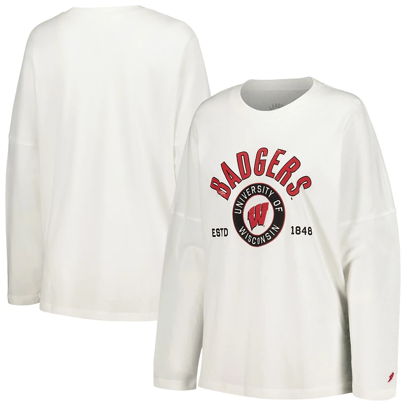 T-shirt surdimensionné à manches longues blanc avec corde linge des Badgers du Wisconsin de la League Collegiate Wear pour femmes