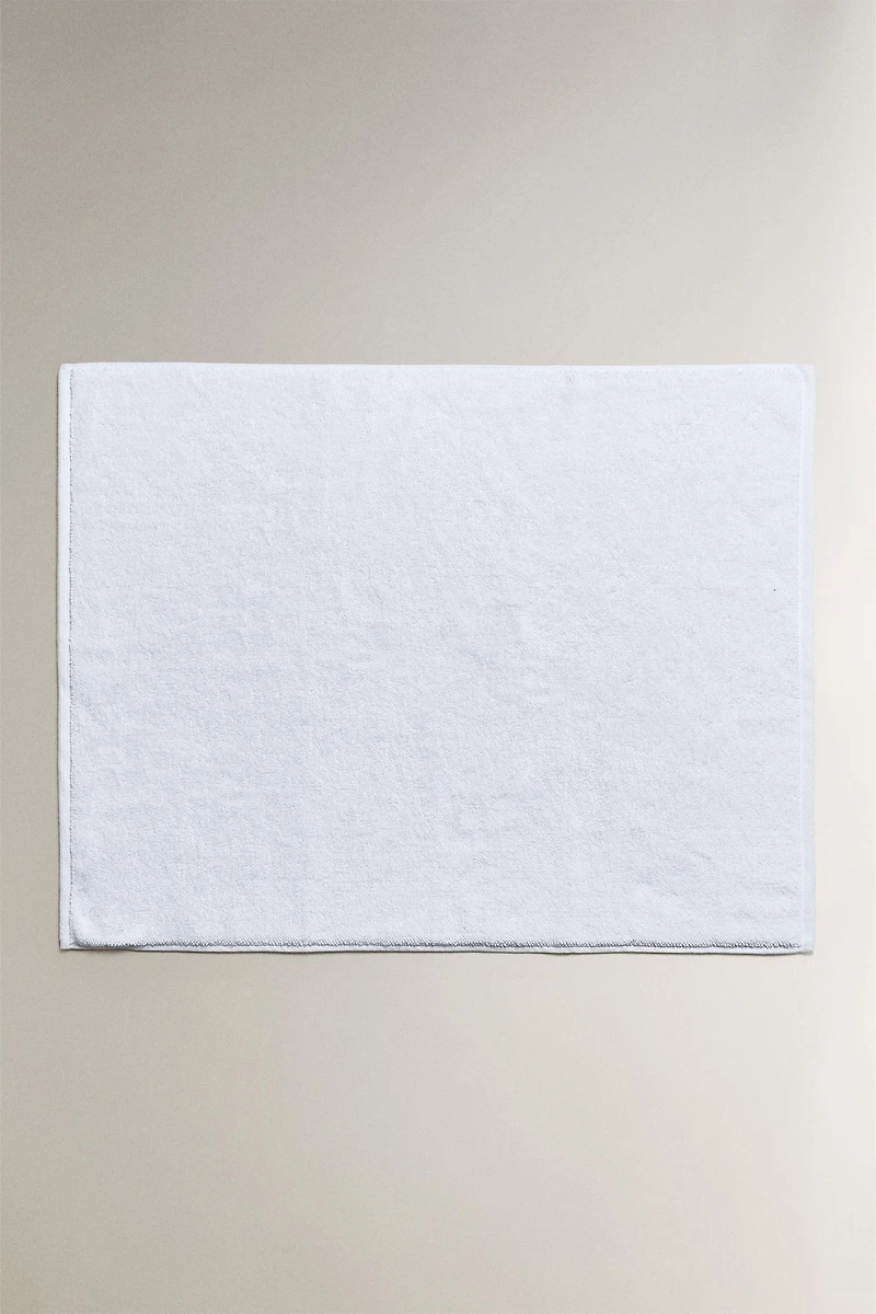 Tapis de bain en coton avec structure en point de riz et traitement antidérapant sur la base.