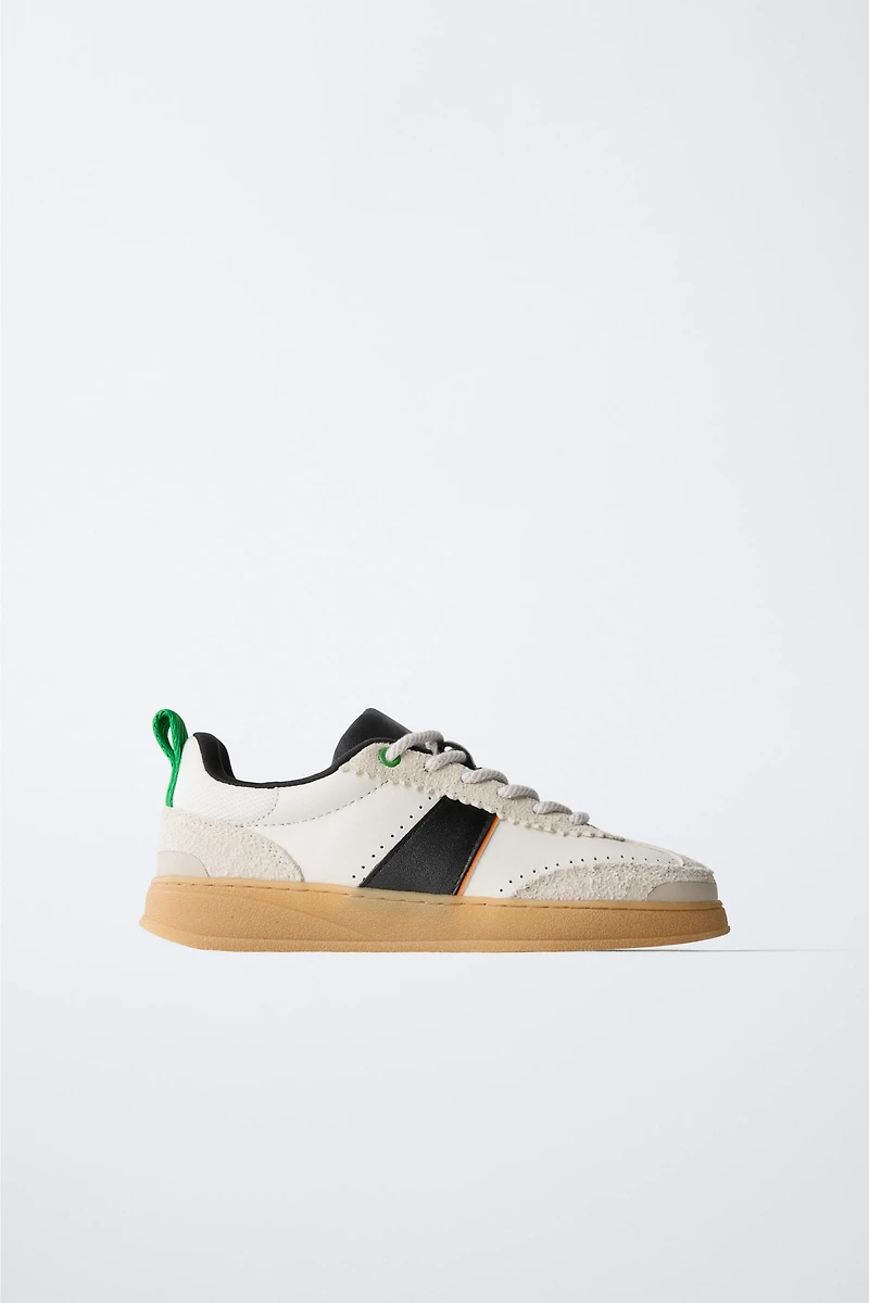 Tennis en cuir. Fermeture par lacets ajustables. Tirant à l'arrière pour faciliter le chaussage. Semelle intérieure souple. Semelle en caoutchouc en contraste de couleur.