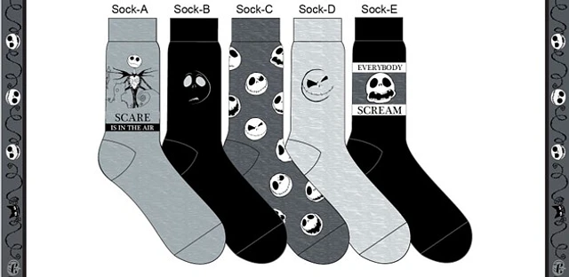 The Nightmare Before Christmas Grey Socks 5 Pack