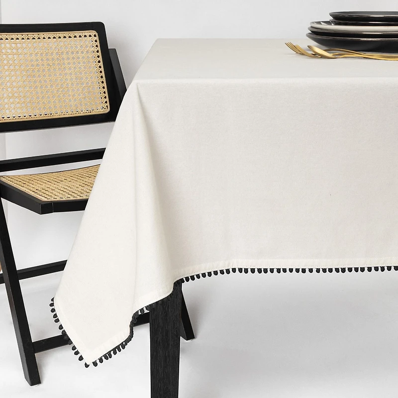 La nappe rectangulaire Thyme & Table 102 po Pom White est conçue pour apporter une touche d'élégance et de sophistication à votre espace salle à manger. Elle est conçue pour résister aux exigences d'un usage quotidien, ce qui en fait un ajout fiable et élégant à votre table. accessoire qui peut être utilisé pour les repas de tous les jours ou pour des occasions spéciales. Cette nappe crée un point focal qui capte l'attention et prépare le terrain pour vos créations culinaires. Fabriquée en 100 % coton durable. Facile à nettoyer. Lavable en machine.