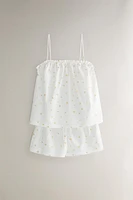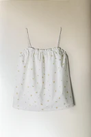 Top en coton à bretelles fines. Il est orné d’un à imprimé fleurs sur l’ensemble.