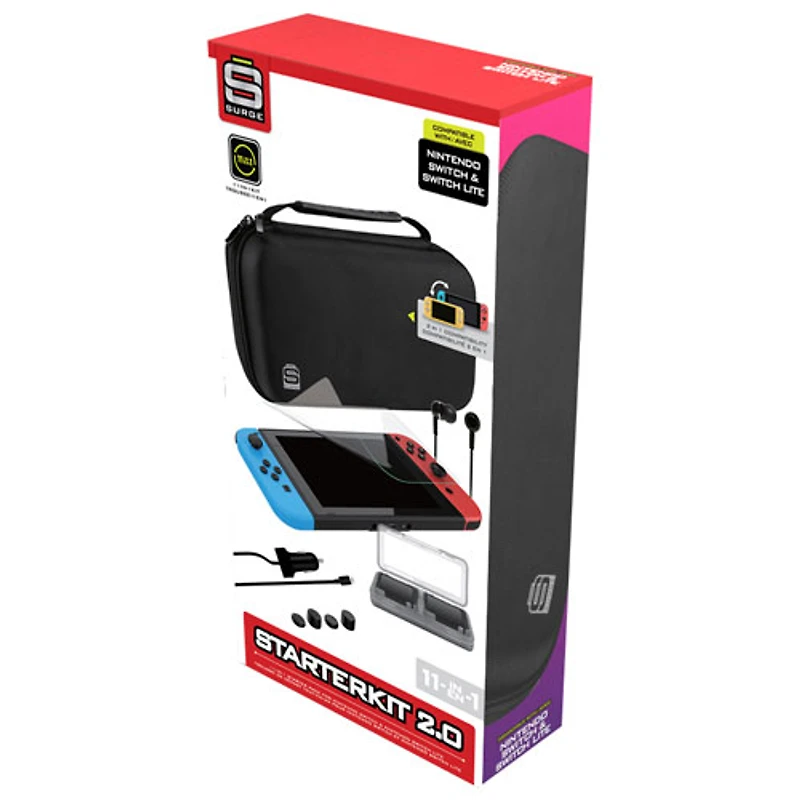 Obtenez tout ce dont vous avez besoin pour jouer à l'extérieur avec la trousse de démarrage 2.0 de Surge pour Nintendo Switch. Elle comprend un chargeur pour voiture, des écouteurs boutons, un petit étui de voyage pour les cartouches de jeu, des capuchons antidérapants qui amélioreront votre performance de jeu, des protecteurs d'écran, un étui et plus encore, pour profiter d'une commodité et d'une protection accrues pendant vos sorties.