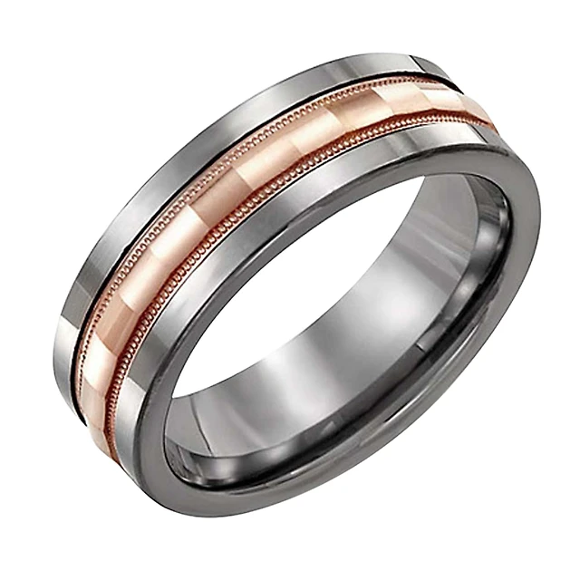 TUNGSTEN AND 10K PINK GOLD RING 7MM