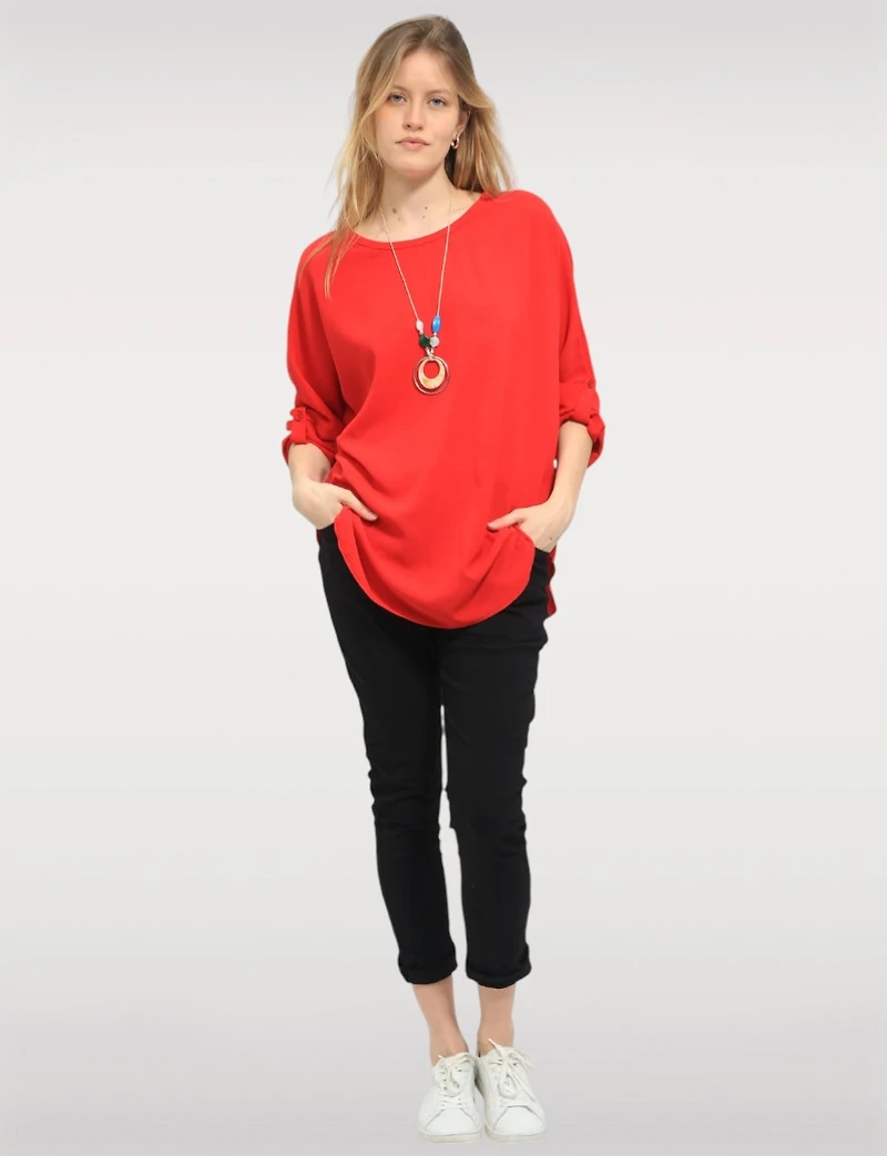 Tunique Fluide à Manches Longues avec Collier & Ourlet Arrondi par Froccella