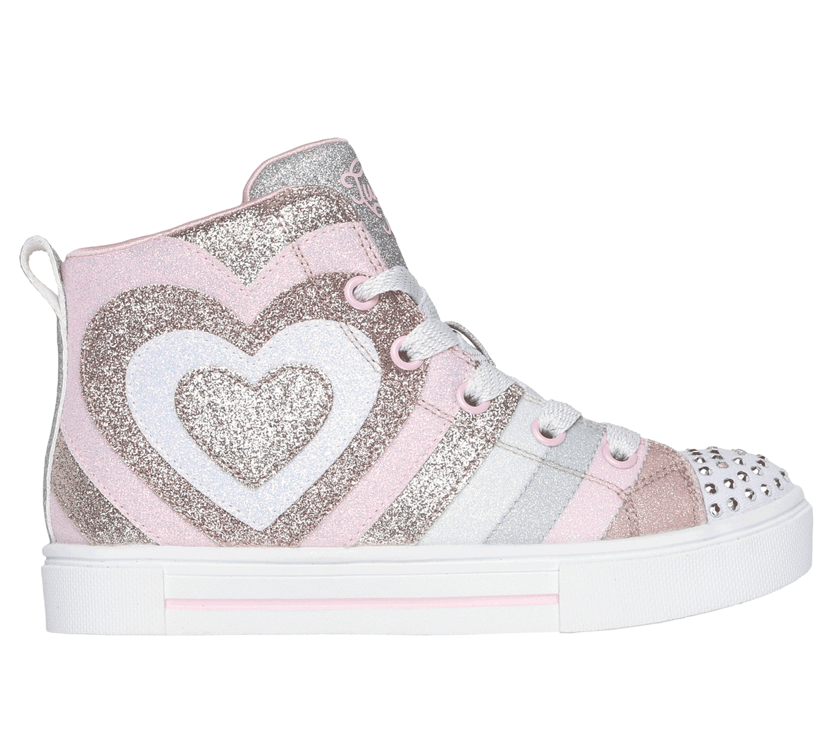 Optez pour un style beau comme un cœur en portant la chaussure Skechers Twinkle Toes® : Twinkle Sparks - Heart Pop. Cette chaussure haute à lacets comprend une empeigne étincelante avec motifs de cœurs superposés, une fermeture adaptative Skechers, un embout orné de pierres Strass et un interrupteur marche/arrêt. Les semelles intérieures coussinées vous offrent un confort exceptionnel pendant toute la journée.