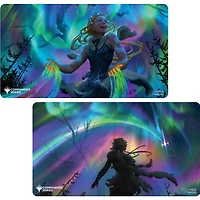 Tapis de jeu double face présentant l'illustration populaire Magic: The Gathering imprimée des deux côtés du tapis de jeu.