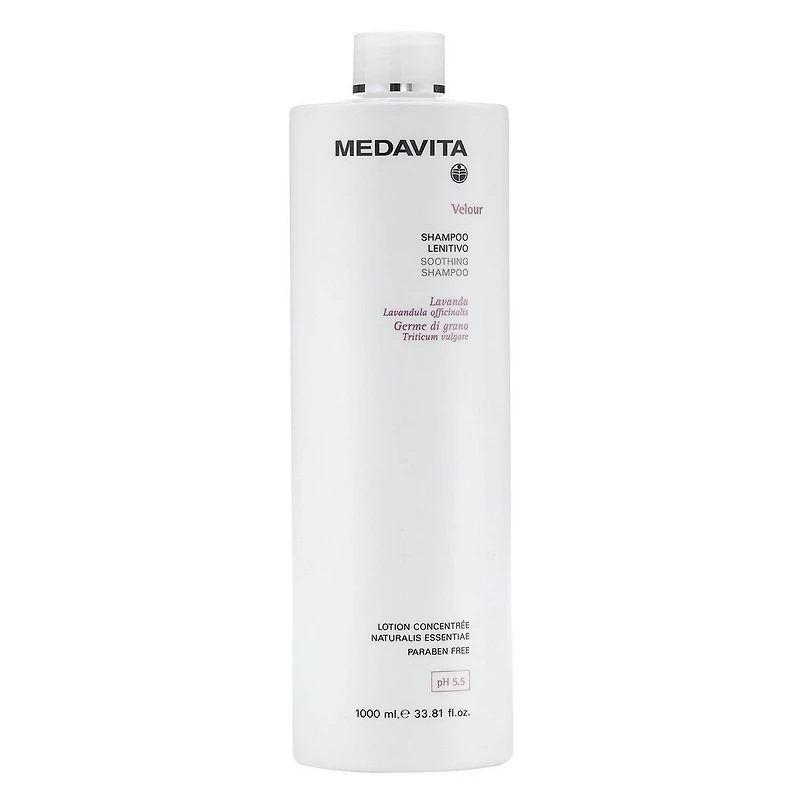 Le Medavita Velour Shampooing Apaisant est formulé pour nettoyer délicatement les cheveux et apaiser les cuirs chevelus sensibles ou irrités. Grâce aux propriétés apaisantes de la lavande et des protéines de germe de blé, il calme les irritations tout en procurant un soulagement immédiat. Sa formule enrichie à l’allantoïne régénère efficacement les cellules de l’épiderme, favorisant un cuir chevelu sain. Les cheveux restent doux, faciles à coiffer et lumineux après chaque utilisation.