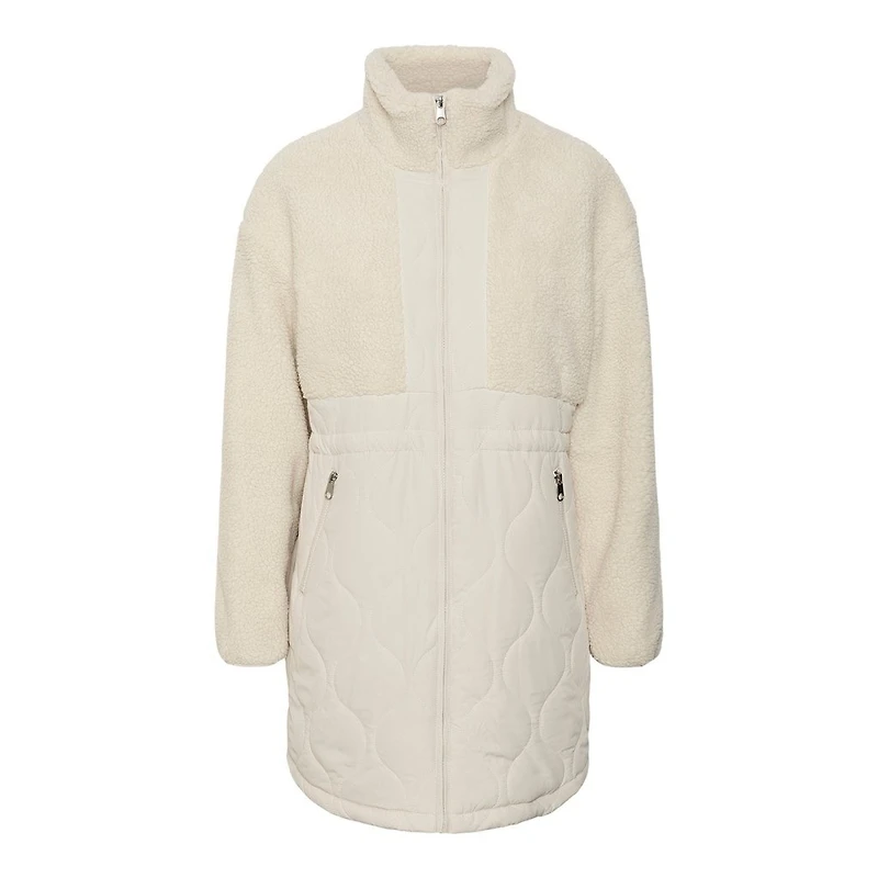 Un manteau hybride qui mêle confort et style. La moitié supérieure en polaire texturée se marie parfaitement avec le bas matelassé, créant un contraste moderne et fonctionnel. Avec son col montant, sa fermeture éclair et ses poches pratiques, c'est votre allié pour les saisons intermédiaires.