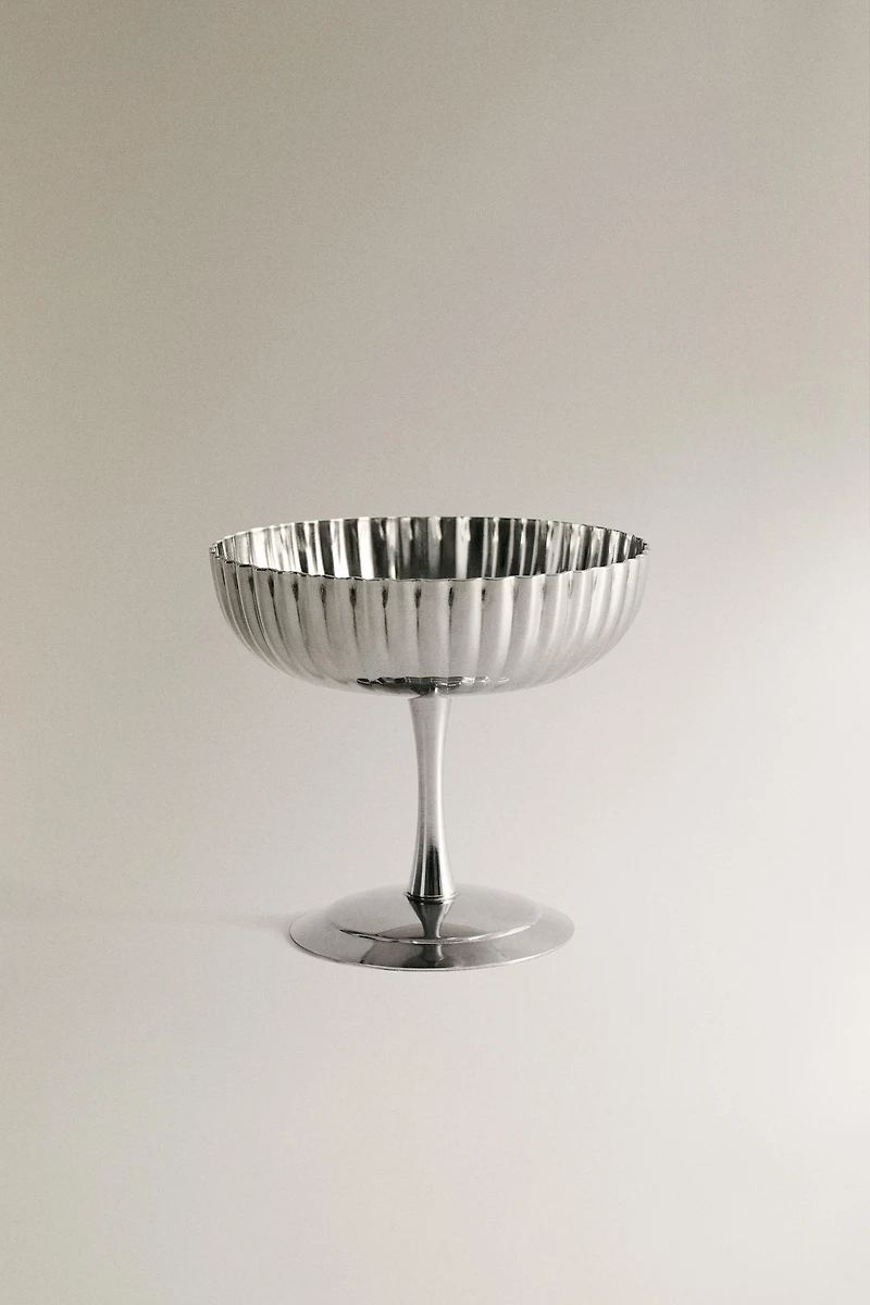 Verre élaboré en métal avec un détail d'ondes et un effet brillant.