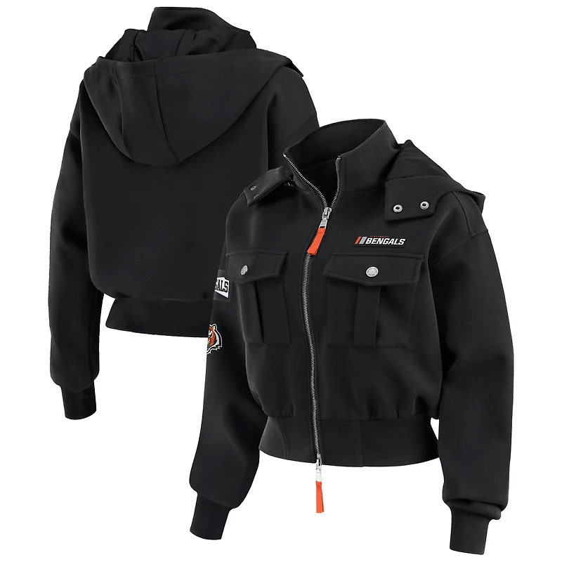 Veste à capuche courte et zippée entièrement pour femme WEAR by Erin Andrews, noire, avec poches plaquées trois mélanges, des Bengals de Cincinnati