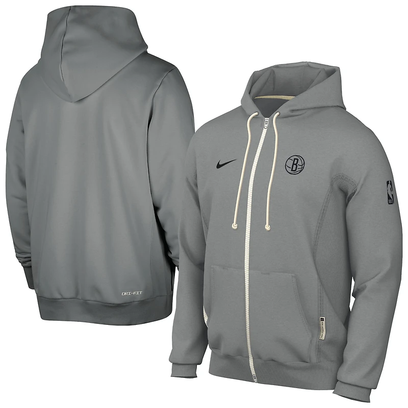 Veste à capuche entièrement zippée Nike Brooklyn Nets Authentic Standard Issue pour homme Gris