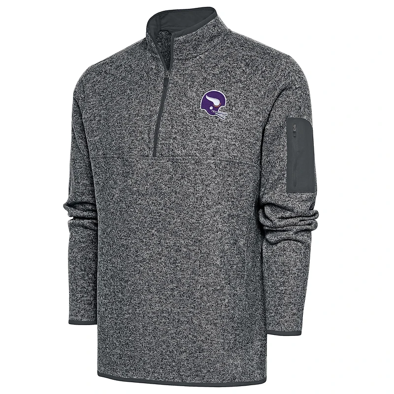 Rehaussez votre style des Minnesota Vikings avec cette veste à enfiler Antigua Fortune à quart de zip. Ce pull mi-épais est doté d'un tissu chiné brossé et d'un imprimé Minnesota Vikings thermocollé, idéal pour afficher votre esprit d'équipe lors des journées plus fraîches. Que vous soyez au stade U.S. Bank ou que vous regardiez le match depuis chez vous, ce pull vous gardera au chaud et stylé tout en encourageant les Minnesota Vikings.
