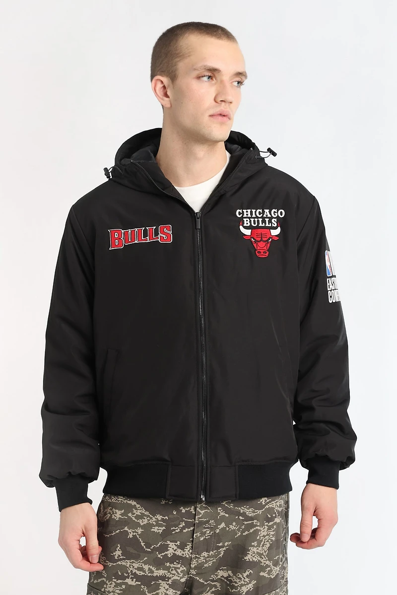Veste bomber à capuche2 poches latérales inclinéesFermeture à boutons-pressionMotifs Chicago Bulls imprimés et brodés à l'avant, le dos et la manche gaucheOurlet et poignets côtelésExtérieur: 96% polyester, 2% viscose, 2% élasthanneCôtes en élasthanne: 97% polyester, 3% élasthanneRembourrage: 100% polyesterLaver à l'envers - Machine à l'eau froide - Cycle délicat avec couleurs similaires - Sans eau de javel - Séchage en machine à basse température - Repassage à basse température sur l'enversImportéArticle #6362-63642606