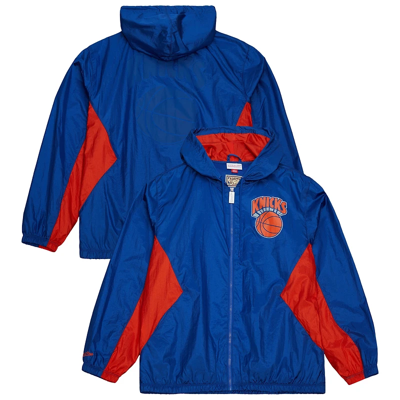 Veste coupe-vent à capuche entièrement zippée Mitchell & Ness New York Knicks bleue pour homme
