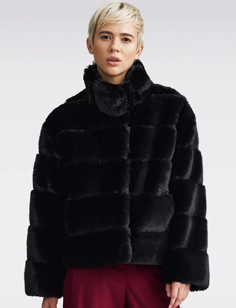 Veste Courte À Col Haut Matelassée en Fausse Fourrure Douce Vegan Par NVLT